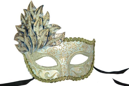 Leaf Cascade Venetian Mardi Gras Mask - Light Blue & Gold by H-M Shop Reviews