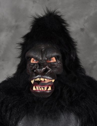 This professional series mask maintains the gorilla's oversized standard profile through the use of foam inserts in the head and sides. All latex over the head mask.